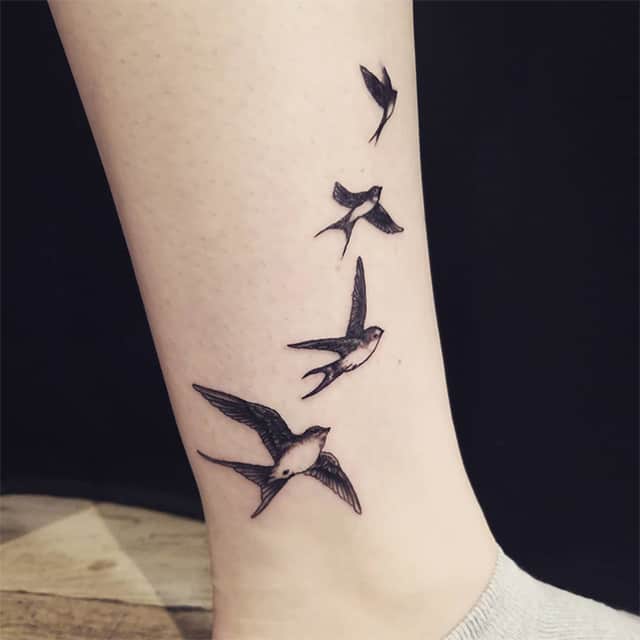 Часто дівчата вибирають для себе тату з ластівкою. Це символ надії, відданості, душевної доброти та тепла. Часто можна зустріти такі татуювання на зап’ясті.