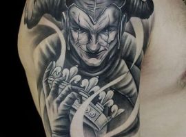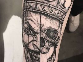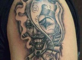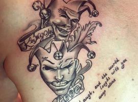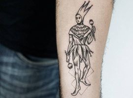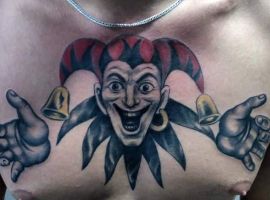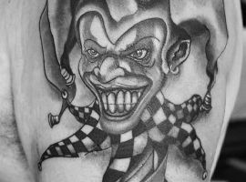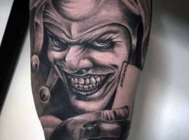 Звичайно, татуювання блазень також нагадує гральні карти. Якщо на шкірі зображений саме джокер, то це говорить про азартний характер людини і його любов до ризику.