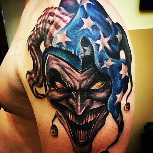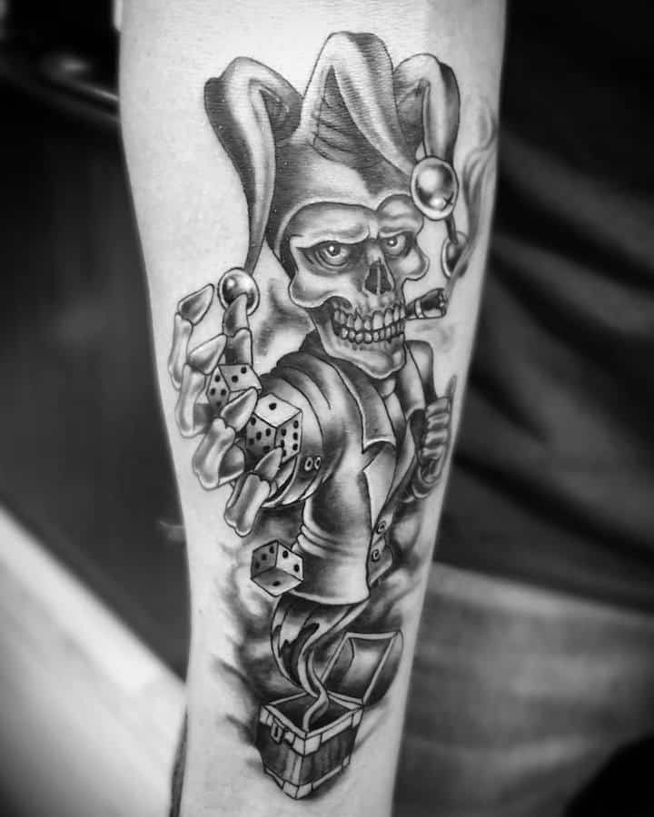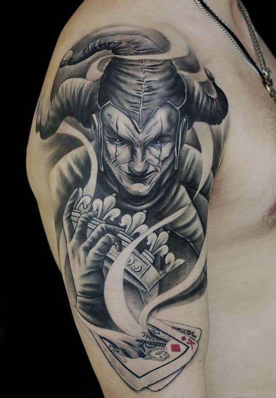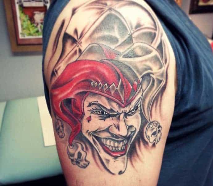 Звичайно, татуювання блазень також нагадує гральні карти. Якщо на шкірі зображений саме джокер, то це говорить про азартний характер людини і його любов до ризику.
