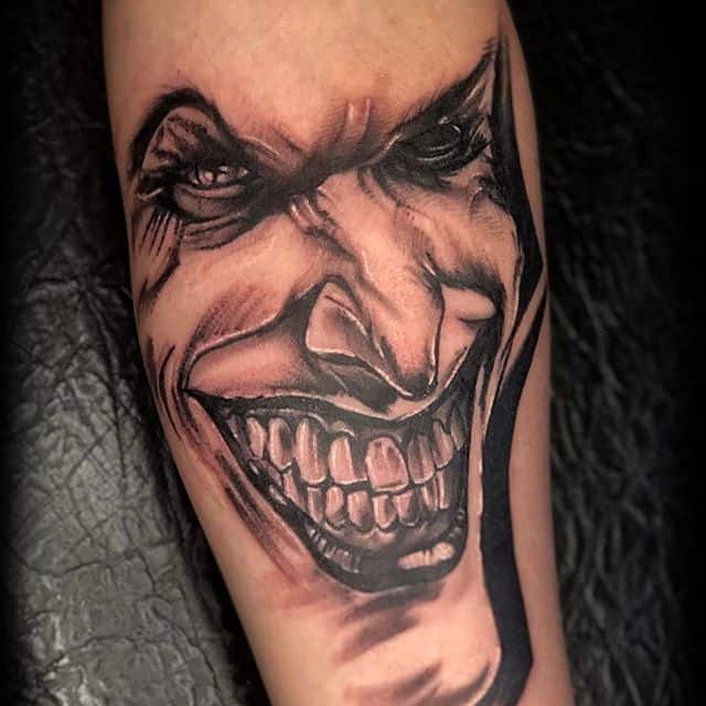 Якщо на шкіру наносять персонажа якогось фільму, то часто це-лиходій антагоніст. Таким чином, за допомогою тату, людина проявляє певний протест. Це особистість, яка вміє ставити перед собою цілі і досягати їх. При цьому, людина дотепна і вміє вправно маніпулювати іншими людьми. Можливо, вона прагне до влади і успіху, володіє впевненістю в собі і навіть вважає себе розумнішою і кращою за інших. Образ злісного арлекіна в татуюваннях уособлює характер свого власника, він як би сміється в обличчя суспільству і заявляє, що не буде наслідувати його засад.