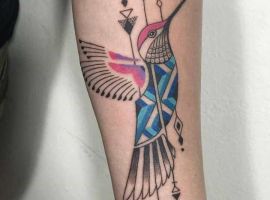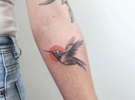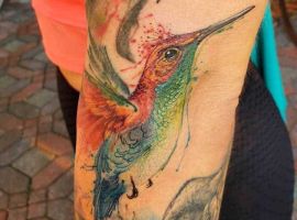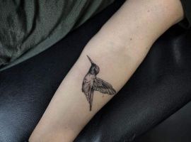 Тату колібрі на руці. Якщо основний посил зображення полягає в тому, що власник татуювання вирішив дати собі новий поштовх, то ідеально підійде тату на руці. Тут воно завжди нагадає про те, що варто прагнути тільки вперед. У дівчат ніжно виглядає тату на зап’ясті або кисті руки.
