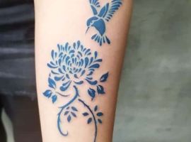 - Пташка з квітами, що літає між ними. Підвищує жіночність, сексуальну привабливість, додає оптимістичний погляд на події. Часто поєднується з орхідеєю – символом крихкості і витонченості.