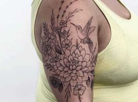 Тату колібрі на плечі. Цей варіант дозволяє витатуювати детальний малюнок з написом, що передає ваше життєве кредо.