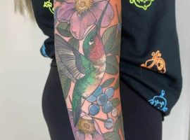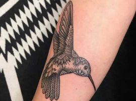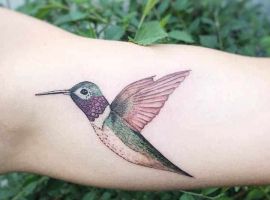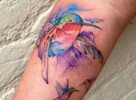 Тату з колібрі користується великою популярністю у всьому світі. Воно привертає увагу красою і витонченістю. Поширене значення татуювання колібрі – любов до життя в цьому світі, вміння ловити радість в кожному зітханні. Як і більша частина татуювань із зображенням птахів, воно означає Прагнення до свободи. Ескізи майбутніх творів виглядають барвистими і витонченими.