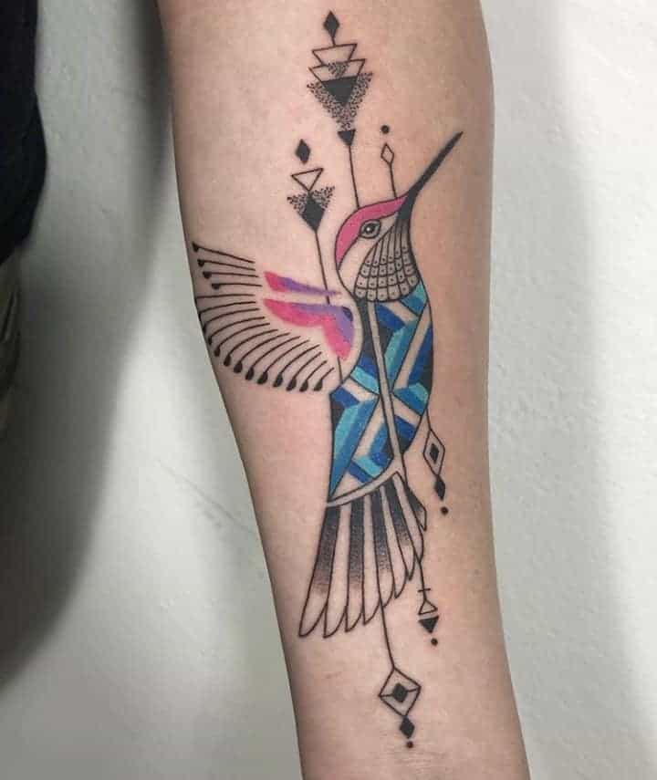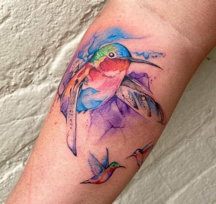 Тату з колібрі користується великою популярністю у всьому світі. Воно привертає увагу красою і витонченістю. Поширене значення татуювання колібрі – любов до життя в цьому світі, вміння ловити радість в кожному зітханні. Як і більша частина татуювань із зображенням птахів, воно означає Прагнення до свободи. Ескізи майбутніх творів виглядають барвистими і витонченими.