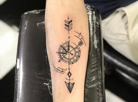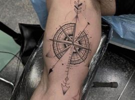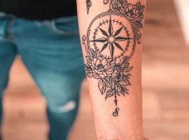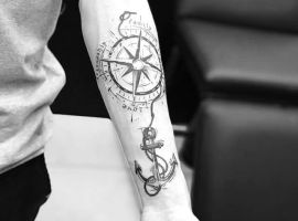 Тату компас на руці більш властивий хлопцям, вони полюбили цей знак за вірність, а якщо поруч з ним набити і якір то символічне позначення придбає новий сенс. Наприклад: компас тату на нозі разом з восьминогом означає всебічність розвитку людини, можливість досягти успіху в роботі й зайнятті декількома справами одночасно. Татуювання компаса з якорем уособлює для чоловіків сімейні пута та набуття свого місця в цьому світі.