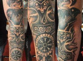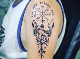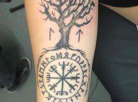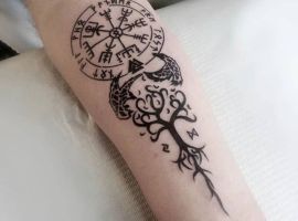 Дуже популярні два способи зображення компаса – у вигляді скандинавських рунічних зображень Vegvisir та Aegishjalmur (шолом жаху), що успадковані з історії Вікінгів. В не залежності від попередніх типів виконання тату компас на передпліччі часто зображують у вигляді скандинавського агісхьяльм або як рунічний вегвізир. Груди служить відмінною зоною для нанесення тату в стилі скандинавського мінімалізму.