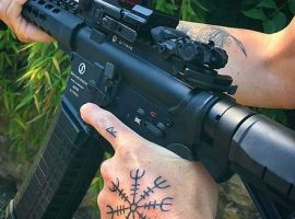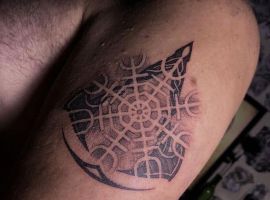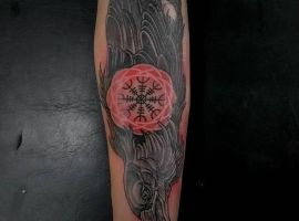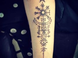 Другий символ вегвізир позначав “компас вікінгів” і зображається на лікті або наноситься на руку. Татуювання вегвізір в даному стилі в країнах Північної Європи наносилося на дерев’яні дощечки й таким чином могло охороняти свого господаря довгі роки. Адже дерево у вікінгів уособлювало душу людини, а тату компас на нозі вважався “живим”.