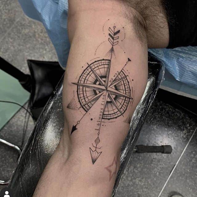 Фахівці тату вважають, що татуювання компас являється головним символом путівників. Він безперечно притягує увагу навколишній і багато говорить про свого власника. Першоджерелом такого знаку володіли моряки, він служив їм дорогою додому і вказував на вірний шлях проводячи крізь негаразди та шторми на морях і океанах. Моряки часто набивали його на своєму тілі у вигляді татуювання і зберігали як талісман, який обов’язково поверне їх до рідного порогу.