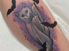 Єгипетська тату кішка з крилами символізує свободу, вихід за рамки буденного, боротьбу світлого і темного в людині, родючість і незалежність. Також це може бути образ провідника померлих у загробний світ.