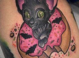Тату кішка сфінкс досить поширена. Досить незвичний зовнішній вигляд тварини не робить його менш привабливою, а навпаки додає оригінальності і унікальності.
