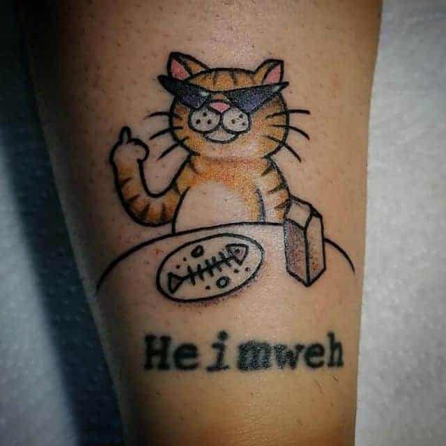 Кошеня набивають собі частіше дівчата. Цей малюнок може означати не тільки м’якість, ніжність і доброту своєї власниці, а й інфантильність, небажання дорослішати, потреба в опіці.