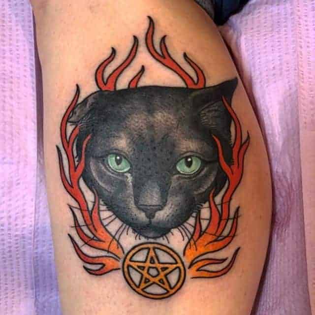 Чорний колір звіра викликає іноді розбіжності. Одні вважають, що це знак біди і невдач, згідно з народними прикметами. Інші спеціально в знак протесту всього звичного, набивають такий малюнок – символ бунтарства, віри тільки в себе і свої сили.
