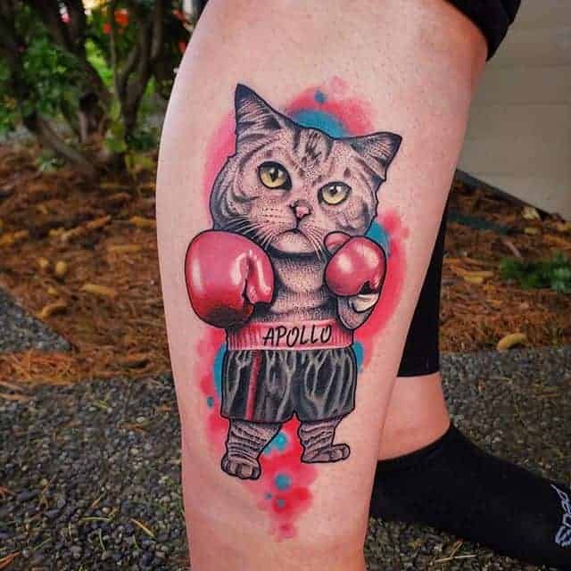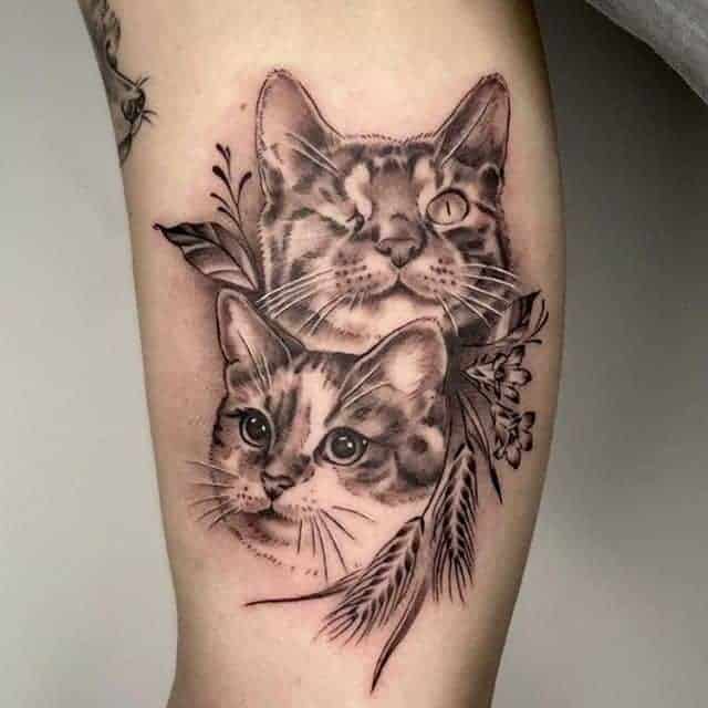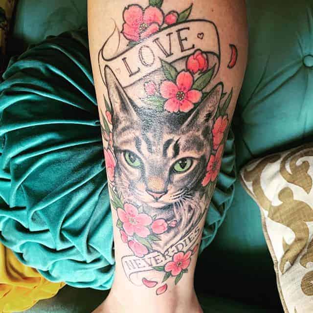 Чоловіки роблять татуювання кота на нозі, на плечі, лопатці, спині, литках, руках.