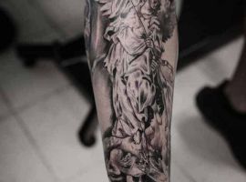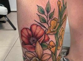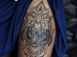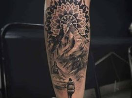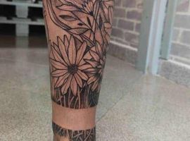 Нога асоціюється з рухом і стабільністю, тому тату тут часто про шлях життя, зростання чи силу. Конкретний мотив додає шарів: лев – лідерство, квіти – красу.