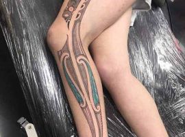 - Навколо коліна: Для орнаментів, що обплітають суглоб. Воно додає унікальності, ніби тату стає частиною анатомії.