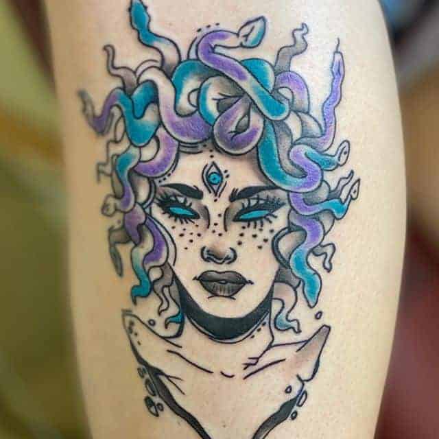 - Змії: Плавні лінії рептилій. Змія втілює мудрість і перетворення, допомагаючи прийняти етапи життя, і додає інтриги голені чи стегну.