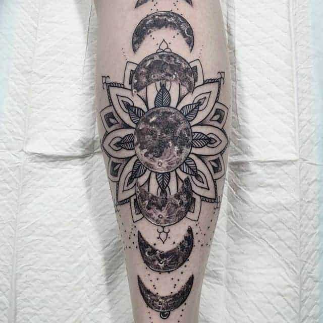 - Навколо коліна: Для орнаментів, що обплітають суглоб. Воно додає унікальності, ніби тату стає частиною анатомії.