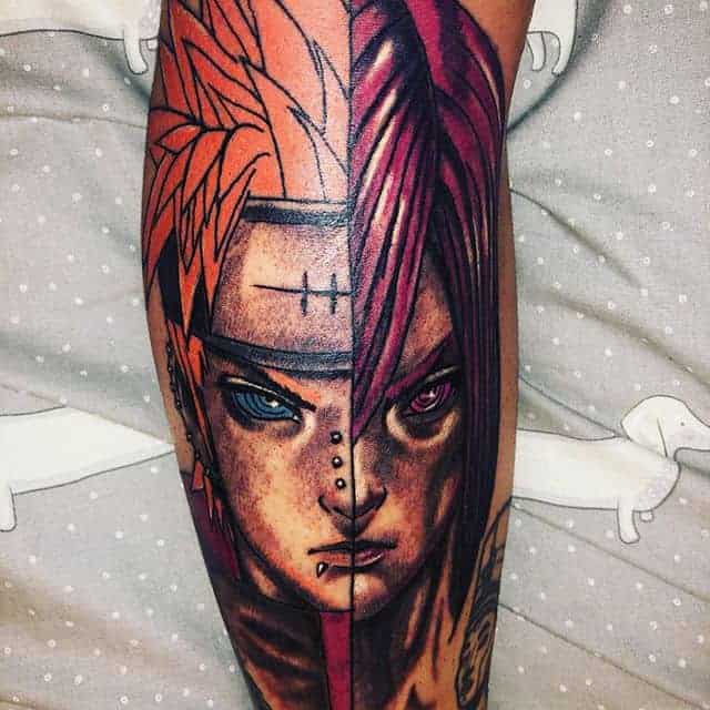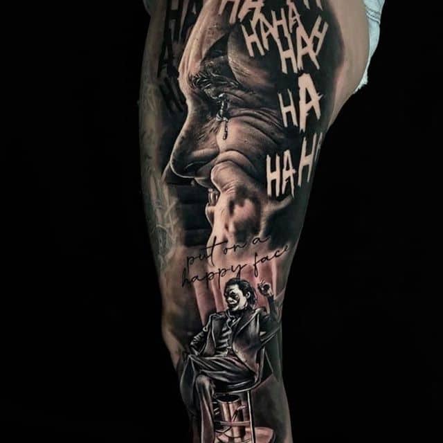 Нога як зона для тату унікальна своєю мобільністю: малюнок ніби танцює з кожним рухом, створюючи ефект живої картини. Шкіра тут адаптивна, дозволяючи реалізувати як мініатюрні деталі, так і грандіозні композиції без ризику деформації. Порівняно з іншими частинами тіла, нога пропонує баланс: легко сховати під штанами для офісу, але й ефектно показати влітку. Анатомічні особливості, як вигини стегна чи рельєф ікри, додають об’єму, роблячи тату тривимірним. Ця ділянка дуже добре підходить для нанесення об’ємних візерунків, бо це рівна ділянка значного розміру.