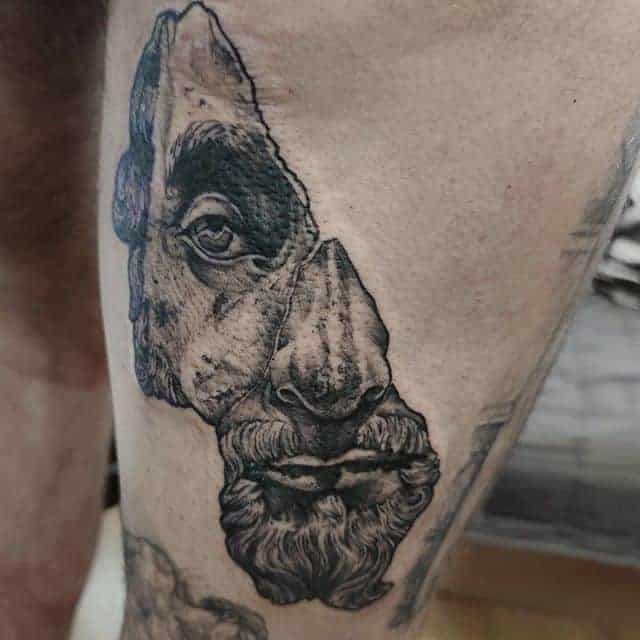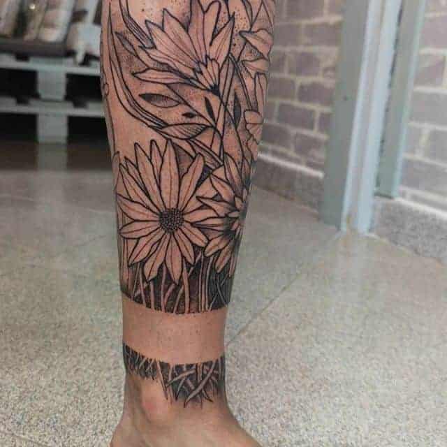 Нога асоціюється з рухом і стабільністю, тому тату тут часто про шлях життя, зростання чи силу. Конкретний мотив додає шарів: лев – лідерство, квіти – красу.
