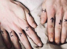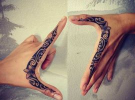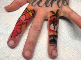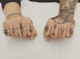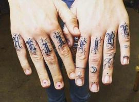А ось другий варіант-протилежний, і більше підходить для чоловіків. Вони наносять тату на пальцях чоловічі грубі об’ємні і помітні. Це робиться для залучення уваги, адже саме на цьому місці малюнки будуть кидатися в очі. Так роблять відомі артисти, наприклад – репери і їх послідовники. До того ж, в такому випадку це не єдиний малюнок на тілі. Найчастіше так роблять ті, у кого «забиті» всі (або більшість), об’ємні відкриті ділянки шкіри.