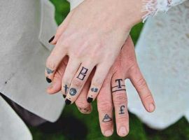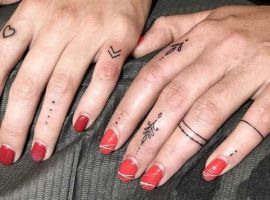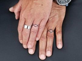 Ще одна популярна ідея саме на пальцях-обручки для пари. Закохані вірять в те, що їх почуття вічні і хочуть відобразити їх чимось таким же постійним. А що може бути більш постійним, ніж татуювання? Тому на безіменних пальцях, де ми носимо обручки, вони наносять зображення у вигляді кілець, як символ вірності і взаємної любові.