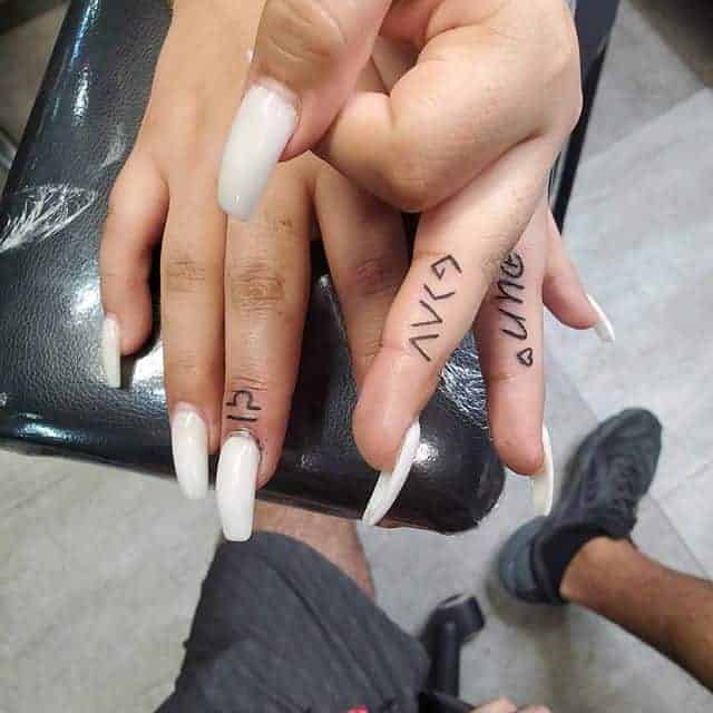 Маленькі тату на пальцях мають величезну різноманітність. Особливо варіанти для дівчат. Представниці прекрасної статі часто наносять перше татуювання саме сюди. Тому тут можна побачити будь-які жіночі ідеї, тільки в мініатюрному виконанні. Найчастіше це міні квіточки або Символи. Найпопулярніший образ-міні трояндочка. Дівчатам також подобаються маленькі тату на пальцях у вигляді сердечка, знака нескінченності, хрестика та інших подібних акуратних символів. Органічно виглядають маленькі листочки або гілочки, а також орнаменти та візерунки. Також популярні міні написи в якості тату на пальці збоку. Дуже символічно нанести сюди якесь слово, як символ найважливішого в житті. Воно буде потрапляти на очі і значення зображення буде полягати в нагадуванні про те, що написано. Найчастіше в такому вигляді пишуть слово “love” або ім’я близької людини.