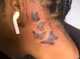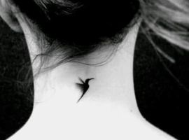 - Мініатюрні тварини, птахи або комахи. Силует птаха символізує свободу та легкість, метелик – переродження та новий етап у житті, а кішка – інтуїцію та самостійність. Маленькі зображення гарно лягають на бічну або задню частину шиї.
