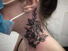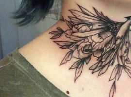 - Квіти та гілочки. Квіти на шиї – це завжди символ ніжності, жіночності та відродження. Троянда може означати кохання та пристрасть, лаванда – спокій і гармонію, а сакура – швидкоплинність часу та красу моменту.