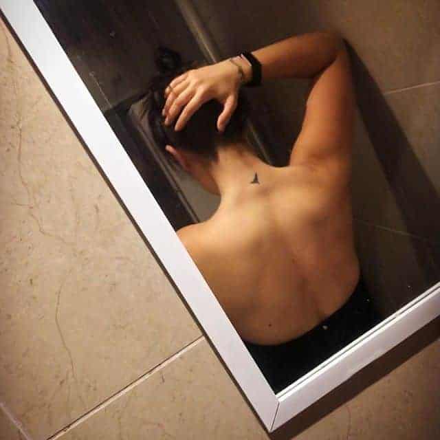 - Мініатюрні тварини, птахи або комахи. Силует птаха символізує свободу та легкість, метелик – переродження та новий етап у житті, а кішка – інтуїцію та самостійність. Маленькі зображення гарно лягають на бічну або задню частину шиї.