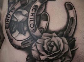 - Тату підкова з трояндою – романтичність натури, залучення любові, вдале заміжжя.