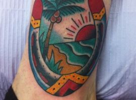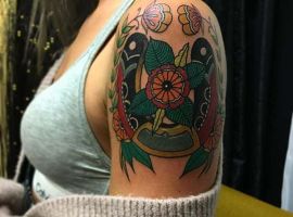Популярний варіант в стилі Олдскул. Він виконаний в яскравих фарбах, з чіткими контурами. Мають гарний вигляд будуть таке тату на зап’ясті, на передпліччі, на стегні або на нозі. Також цікаві татуювання виконуються в стилях: