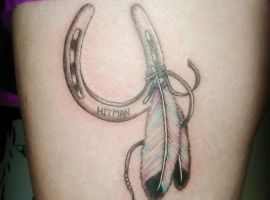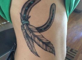- Татуювання підкови з пір’ям – це успіх, радість, підйом по кар’єрних сходах, постійна удача.