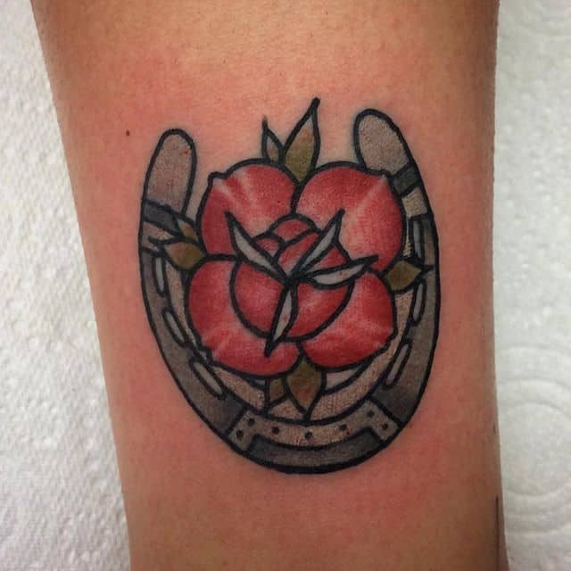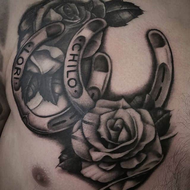 - Тату підкова з трояндою – романтичність натури, залучення любові, вдале заміжжя.