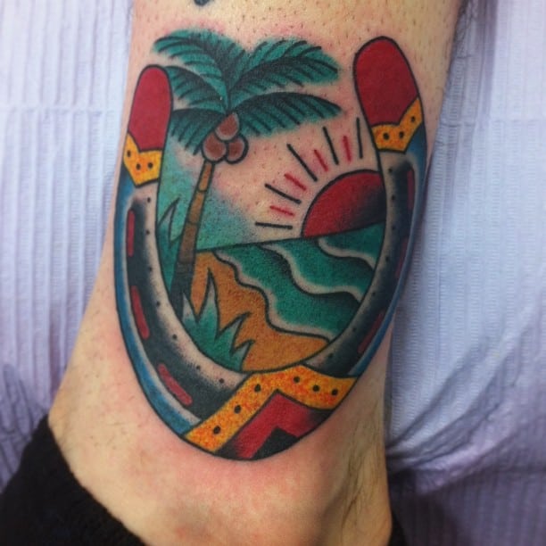 Популярний варіант в стилі Олдскул. Він виконаний в яскравих фарбах, з чіткими контурами. Мають гарний вигляд будуть таке тату на зап’ясті, на передпліччі, на стегні або на нозі. Також цікаві татуювання виконуються в стилях: