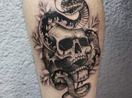 Череп зі змією. Таке татуювання служить нагадуванням людині, що все смертно, нічого не вічне.