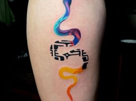 - Акварель: Розмиті барви, ніби акварельний мазок, з змії, що пливе в кольорових хвилях. Акварель робить тату поетичним, символізуючи емоційну трансформацію, і додає яскравості для вираження творчої натури.