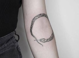 В історії Стародавньої Греції згадується міфічний змій Уроборос. Він відомий своєю здатністю жити вічно – з’їдаючи свій хвіст, його стара шкура відпадає і замість неї зароджується нова. У татуюваннях зазвичай має значення циклічності, відродження, вічної молодості, життя.