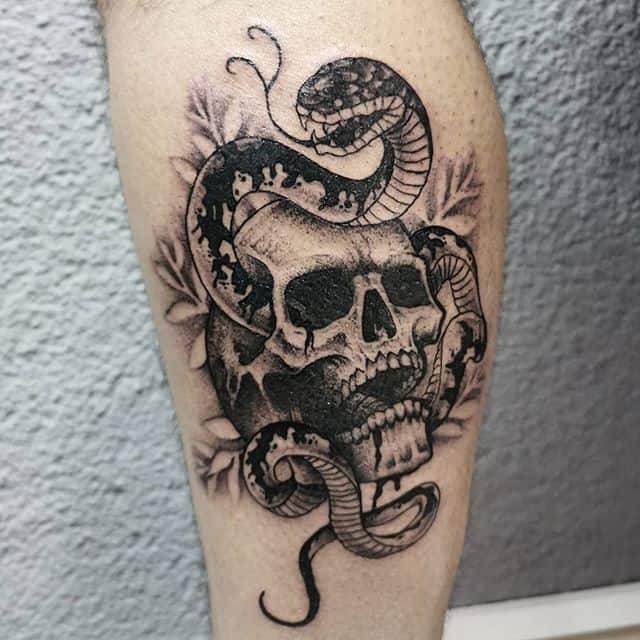 Череп зі змією. Таке татуювання служить нагадуванням людині, що все смертно, нічого не вічне.