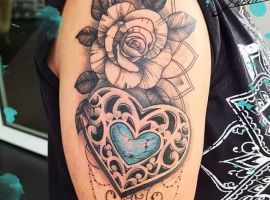 - Роза – це прообраз гармонії, вдалих відносин, радості і краси. Таке тату привертає гармонію у відносинах. Найчастіше квітка зображується в червоному або рожевому кольорі. Серце з червоною трояндою – символ пристрасті.