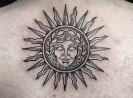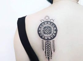 - Популярне тату символ мандали. Такий малюнок допомагає залучити удачу. Цей символ уособлює гармонію і душевний спокій. Він не тільки захистить від негативу, але і допоможе вдосконалюватися. Це талісман, який уособлює гармонію, направляючи енергію на всі сфери життя людини.