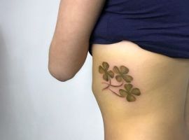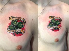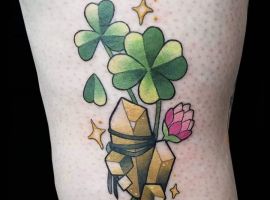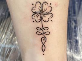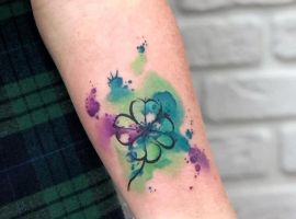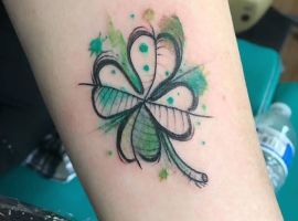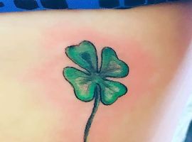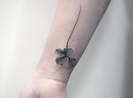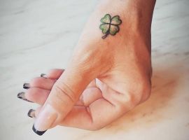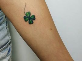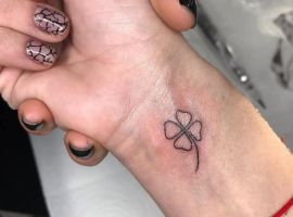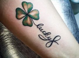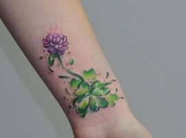 - Найвідомішим символом татуювання на щастя і любов є конюшина з чотирма пелюстками. У природі вона зустрічається дуже рідко, тому того, Хто знайшов його, вважають везучим. Ця квітка символізує надію на благополуччя, віру в те, що скоро все буде добре.