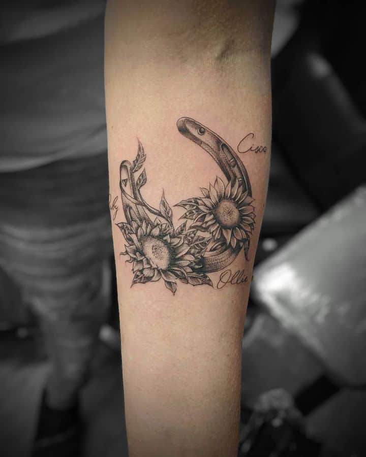 - Зображення підкови має сильну енергетику. Наносять її так, щоб обидва кінці дивилися вгору, тоді тату буде служити оберегом як татуювання на щастя і любов. Якщо кінці спрямовані вниз, це означає, що біди йдуть з життя. Володарі такого татуювання через деякий час після нанесення помічають, що у них все в житті виходить, а матеріальний достаток зростає.