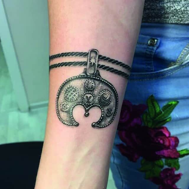 Багато людей вірять, що татуювання можуть мати містичне значення. Правильно обраний варіант стане оберегом, приверне успіх у справах, любов і щастя. Зазвичай це зображення предметів або знаків, які з давніх-давен вважалися талісманами і оберегами. Наприклад, підкова, конюшина-чотирилисник, ключик. Деякі образи допомагають знайти любов: серце, Гілка сакури, троянда. Інші – домогтися матеріального благополуччя.