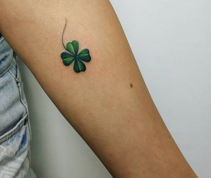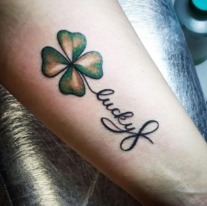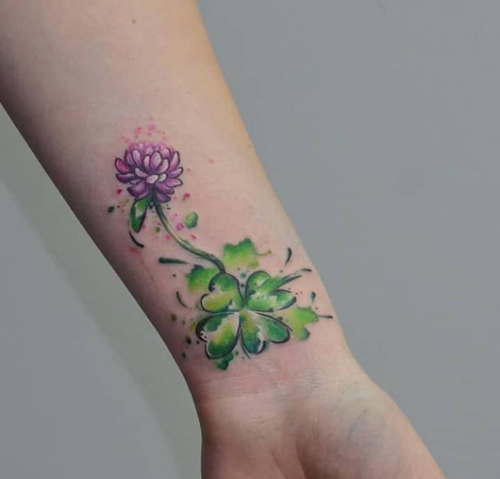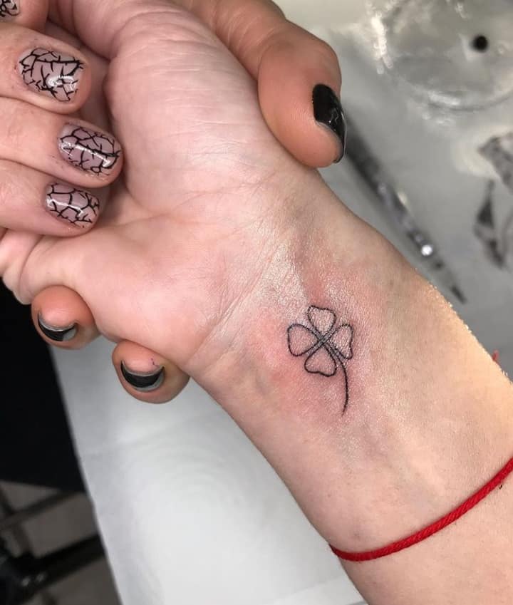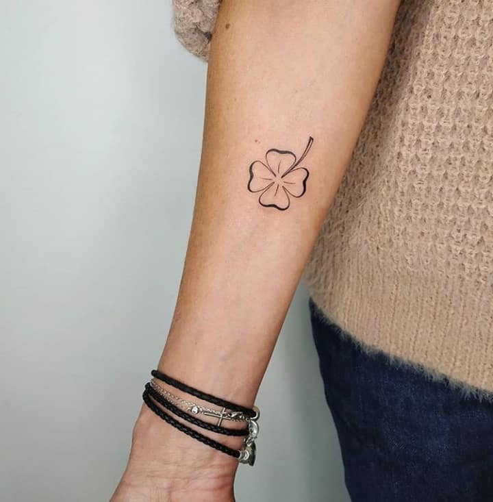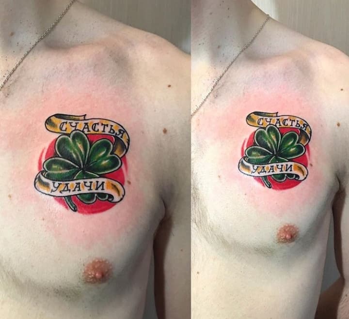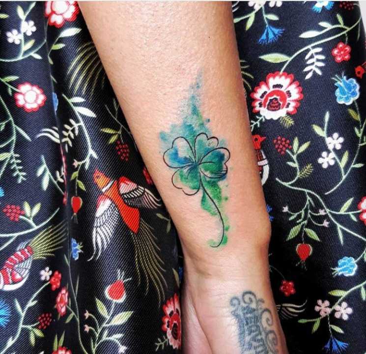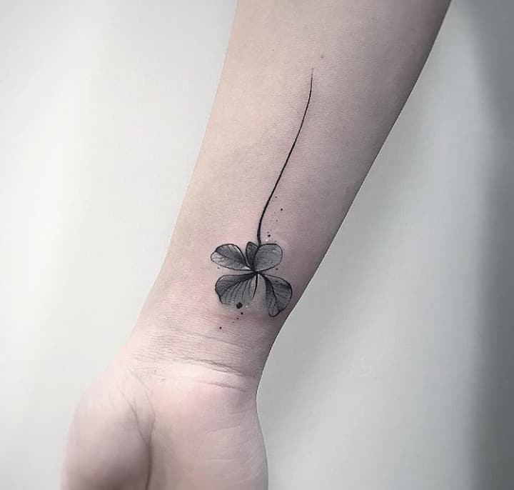 - Найвідомішим символом татуювання на щастя і любов є конюшина з чотирма пелюстками. У природі вона зустрічається дуже рідко, тому того, Хто знайшов його, вважають везучим. Ця квітка символізує надію на благополуччя, віру в те, що скоро все буде добре.