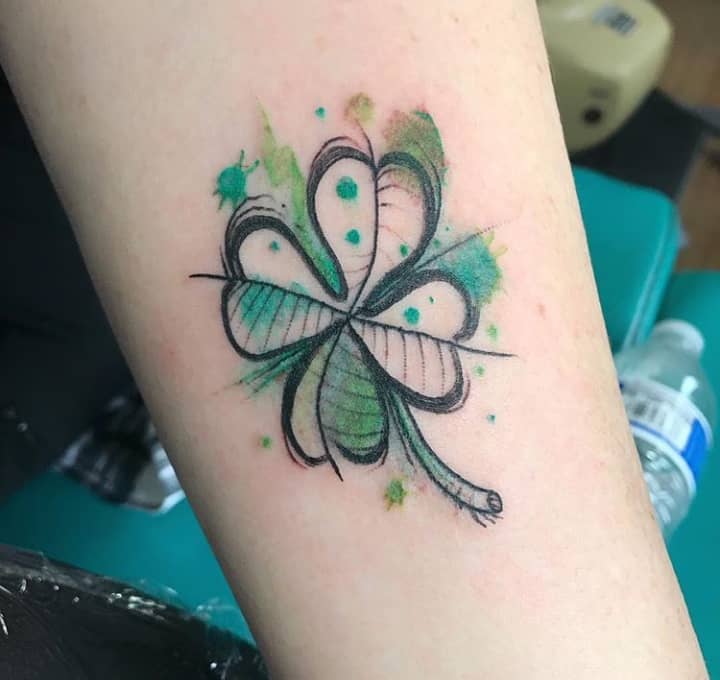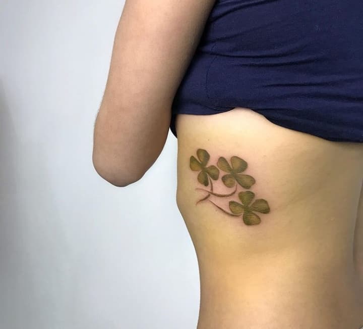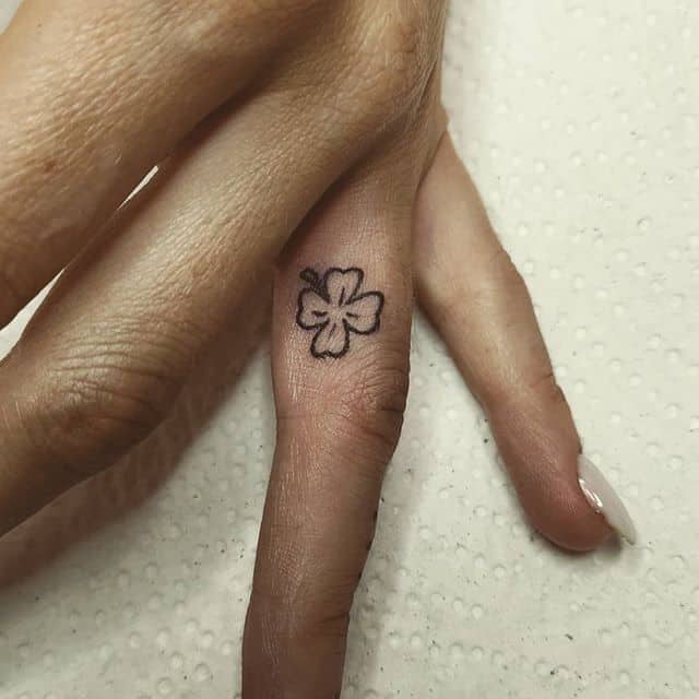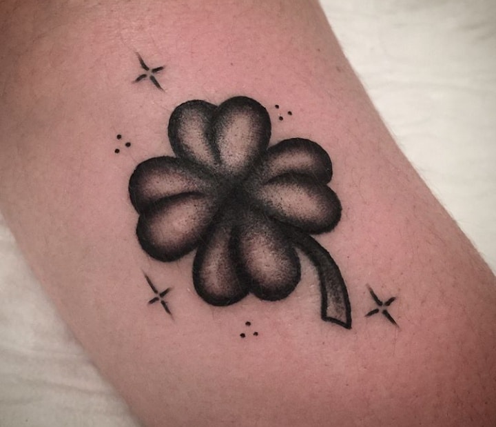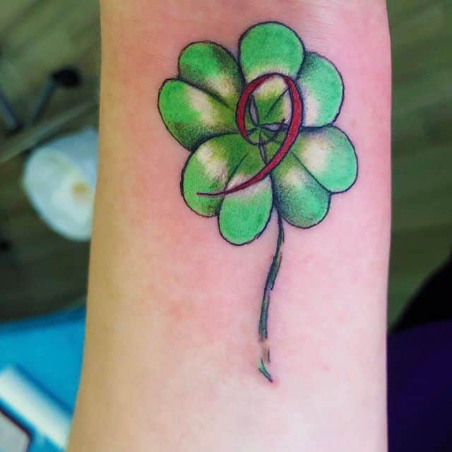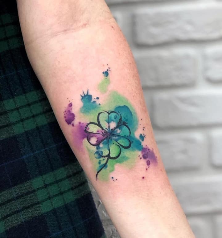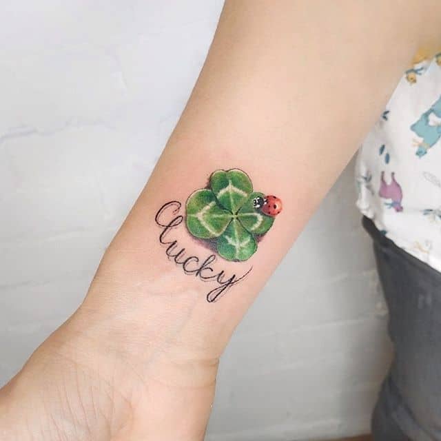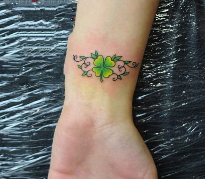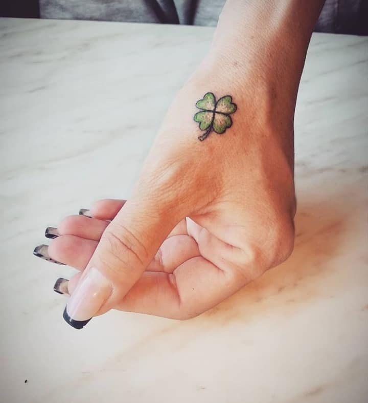 - Найвідомішим символом татуювання на щастя і любов є конюшина з чотирма пелюстками. У природі вона зустрічається дуже рідко, тому того, Хто знайшов його, вважають везучим. Ця квітка символізує надію на благополуччя, віру в те, що скоро все буде добре.