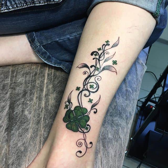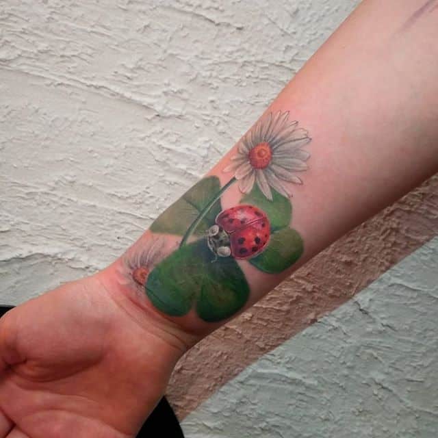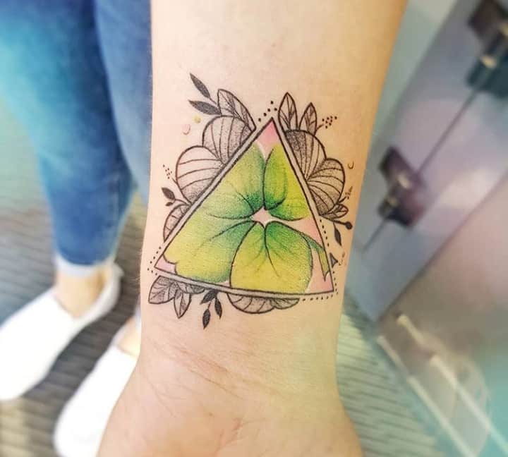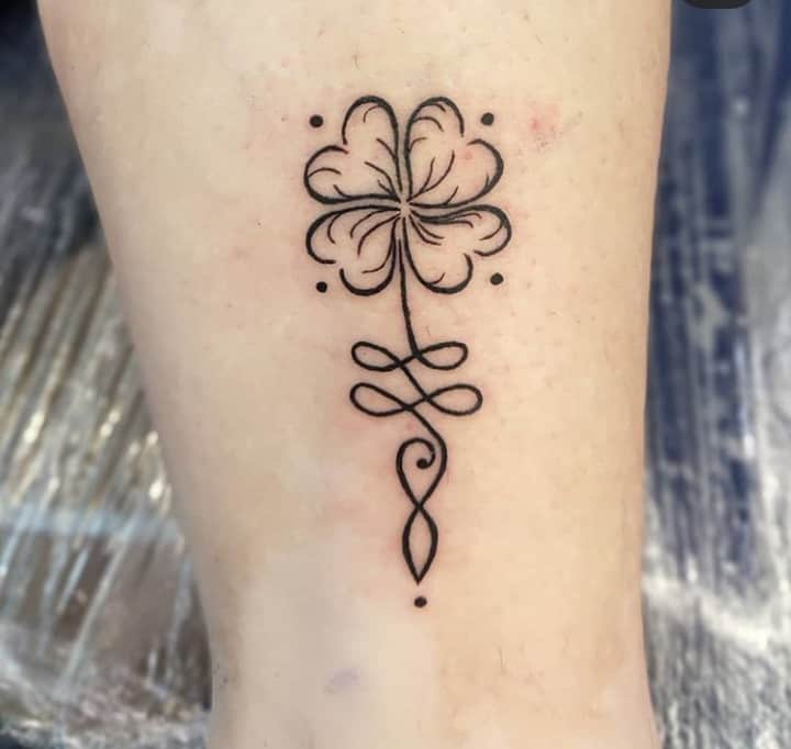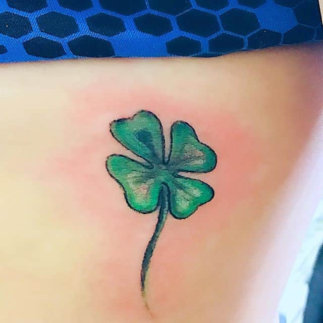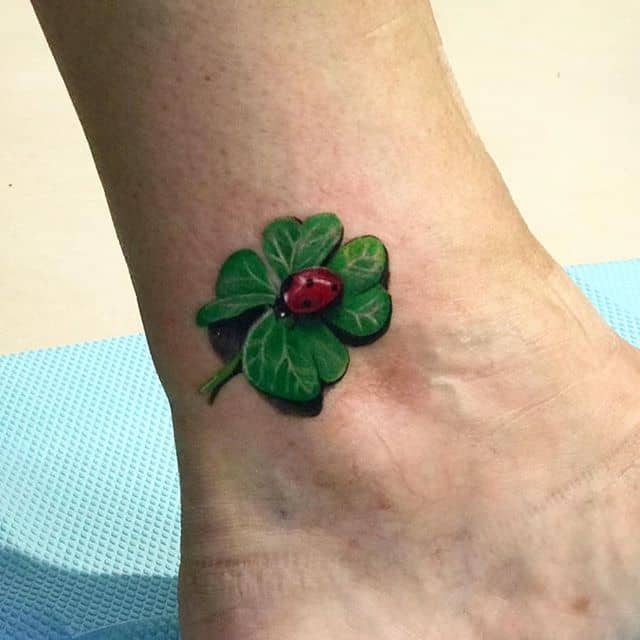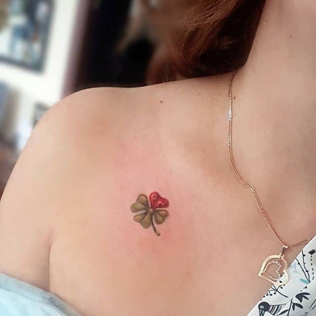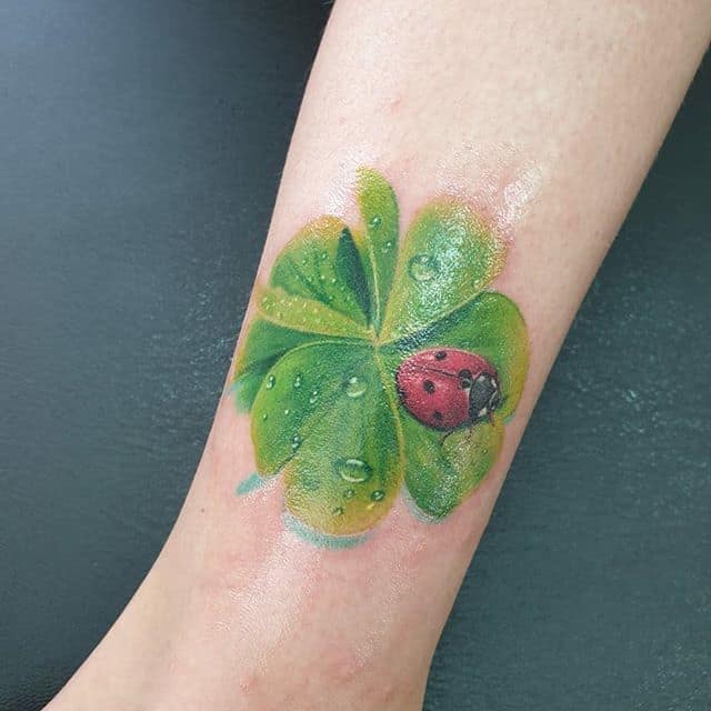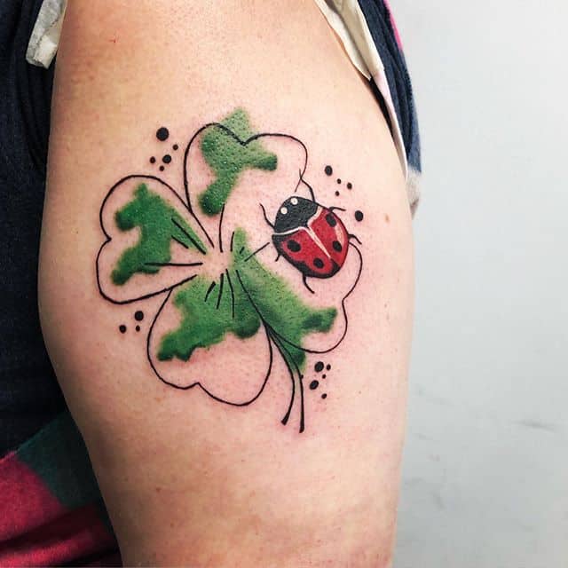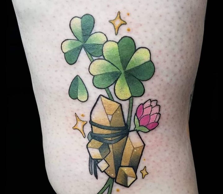- Найвідомішим символом татуювання на щастя і любов є конюшина з чотирма пелюстками. У природі вона зустрічається дуже рідко, тому того, Хто знайшов його, вважають везучим. Ця квітка символізує надію на благополуччя, віру в те, що скоро все буде добре.