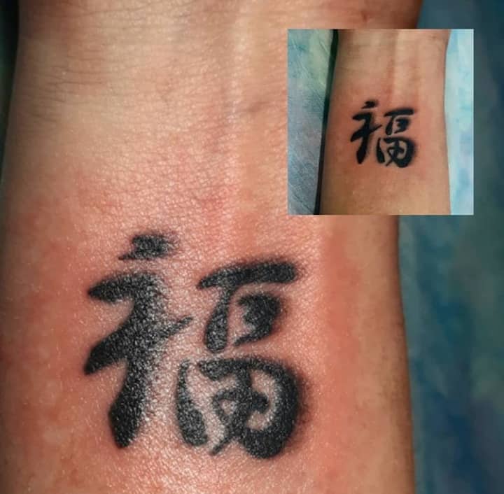 - на шию часто наносять татуювання творчі люди, це місце ідеально підходить для тату ієрогліфа щастя;