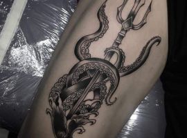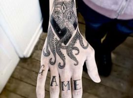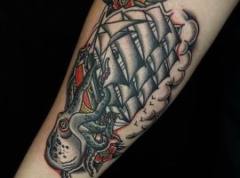 Міфічна істота родом з ісландських легенд – кракен, величезний восьминіг, прообраз гігантського кальмара тату зображується поруч з потопаючим судном. Щупальця молюска обвивають корабель і тягнуть його на дно. Як характеризує людину, яка вибрала для свого тіла такий незвичайний малюнок, татуювання кракен? Виникають такі асоціації: