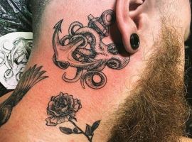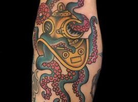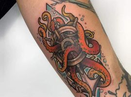 - тату восьминіг з якорем, компасом, скринею або штурвалом;